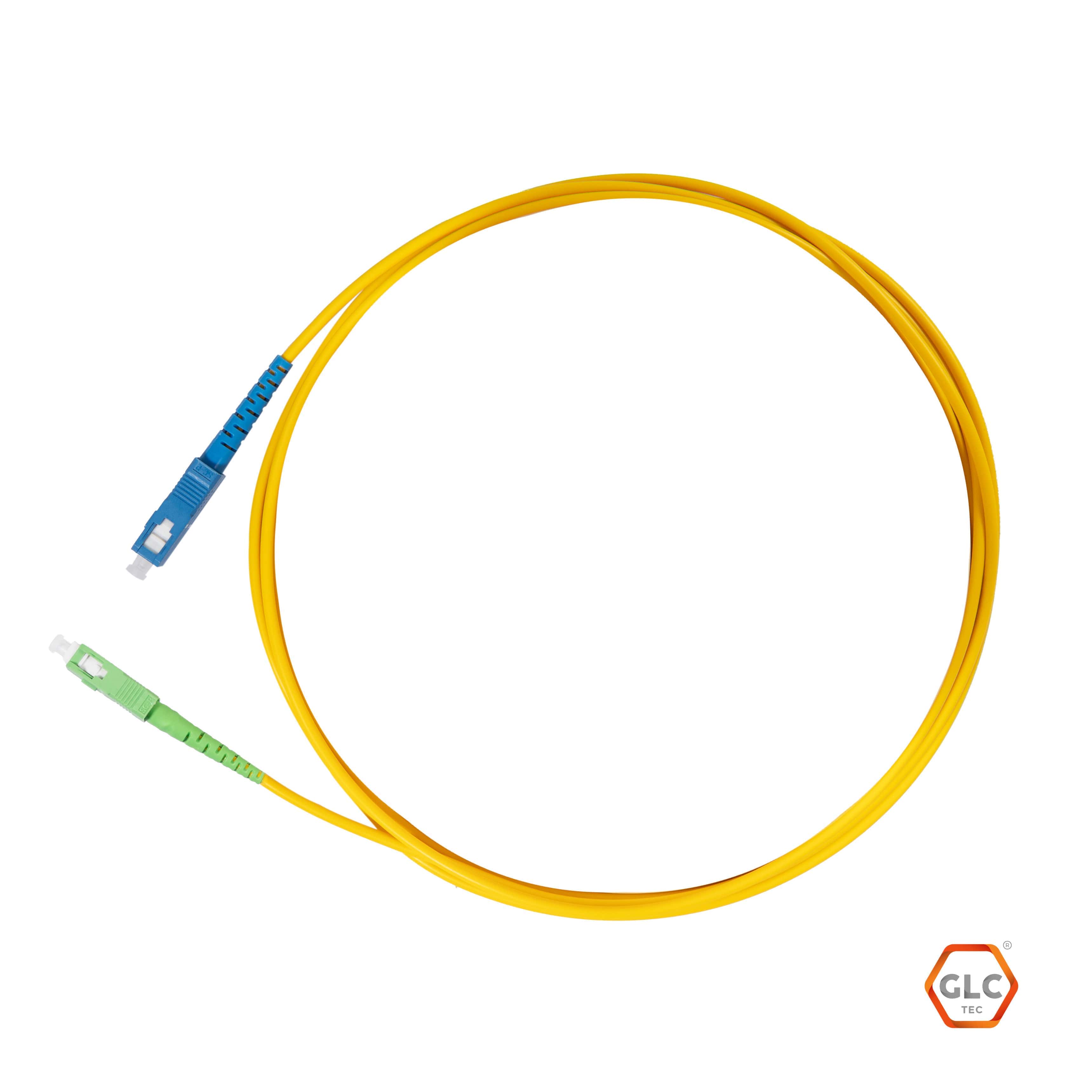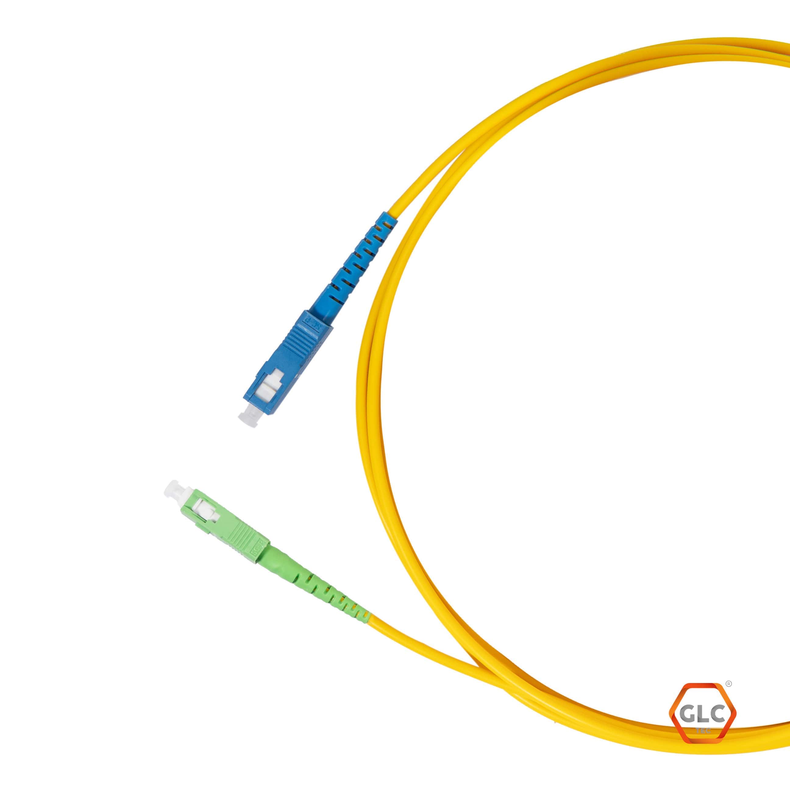 Cable de fibra óptica monomodo de 5 metros con conector SC/APC (verde) en un extremo y SC/PC (azul) en el otro. Diseñado para adaptar conexiones entre equipos con puertos APC (baja reflectividad) y PC (estándar). Cubierta resistente de 2mm. Ideal para instalaciones GPON, FTTH o enlaces donde se requiere compatibilidad entre interfaces diferentes.