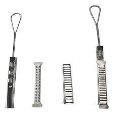 Mordaza de retención: Es un accesorio de ferretería para redes que se utiliza para anclar y tensar un cable de manera segura en un poste o en la fachada de un edificio.