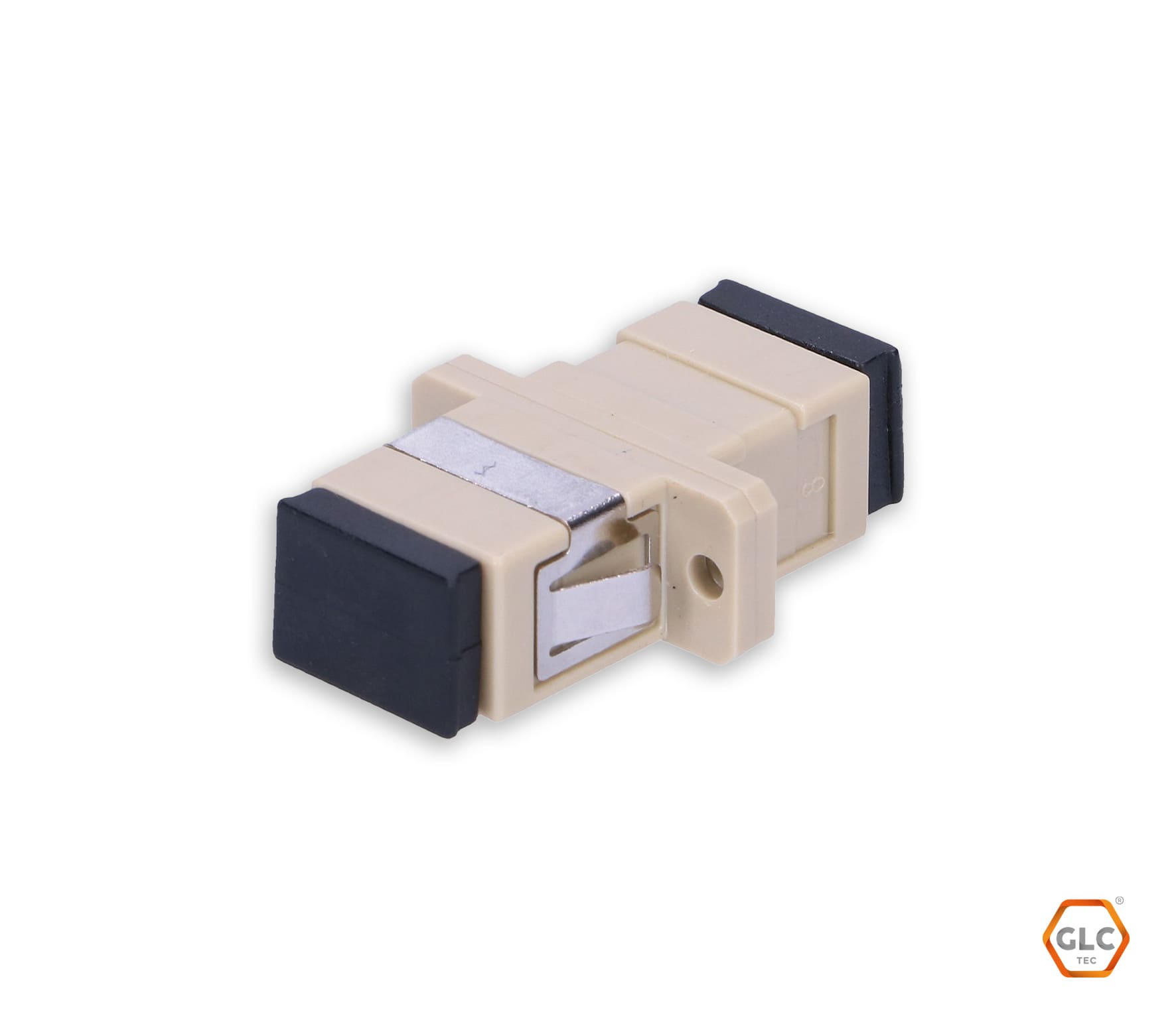 Adaptador de empalme SC simplex para fibra óptica multimodo, diseñado para conectar dos cables de forma precisa y segura.