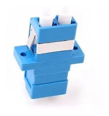 Adaptador o cupla de fibra óptica de tipo LC dúplex, de color azul, diseñado para conectar dos conectores de fibra óptica monomodo (SM).