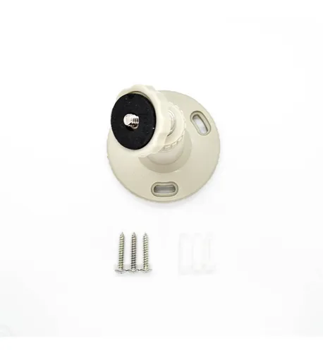 Soporte de pared o techo para cámara de seguridad de uso interior. Fabricado en plástico resistente, es ligero y fácil de instalar, ideal para cámaras tipo domo o bullet.
