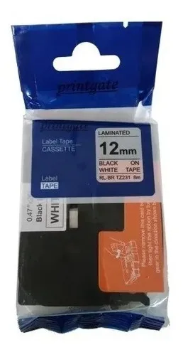 Cinta laminada p/Rotuladora BROTHER 12mm - Negro sobre blanco