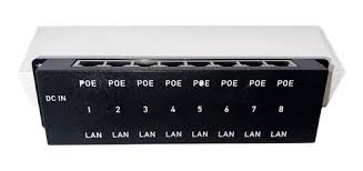 8 puertos: El inyector tiene ocho puertos de salida PoE, lo que permite alimentar simultáneamente hasta ocho dispositivos. Cada puerto tiene un jack RJ45 para la conexión de datos y un jack RJ45 para la salida de datos y energía (PoE).